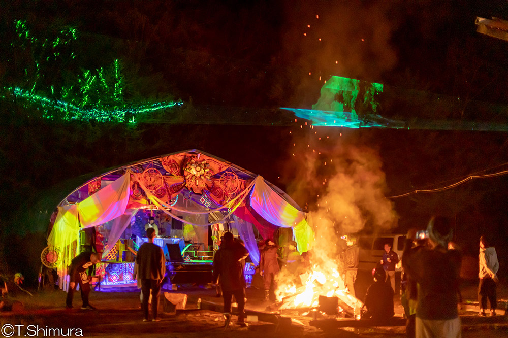 夜は焚き火も焚かれて祭りの雰囲気。