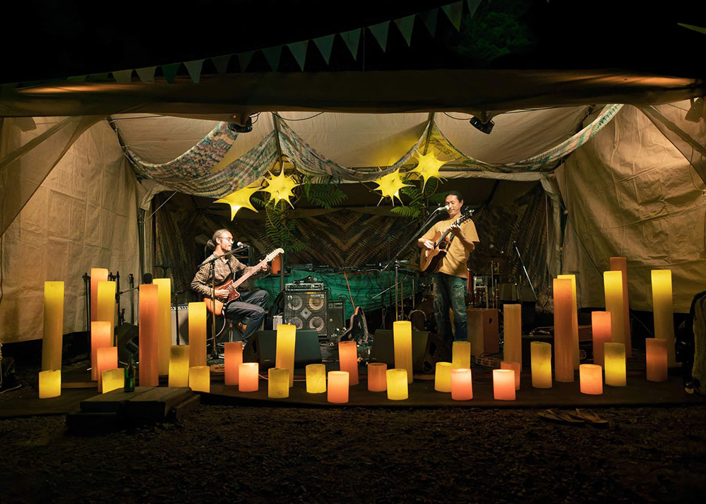 温泉、音楽、自然、癒しをテーマに趣きの違う2つのステージを儲け、 ライブ、DJ、パフォーマーなど30組を超えるアーティストが競演します。 ライブアーティストや DJ による音楽に酔いしれつつ温泉巡りや周辺観光も楽しめます。