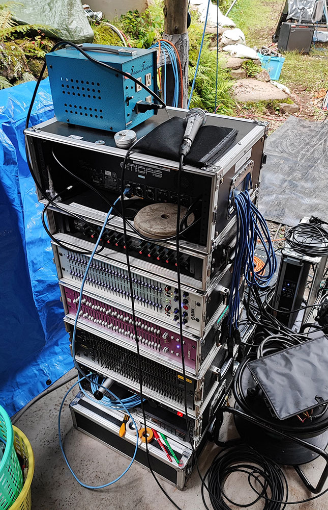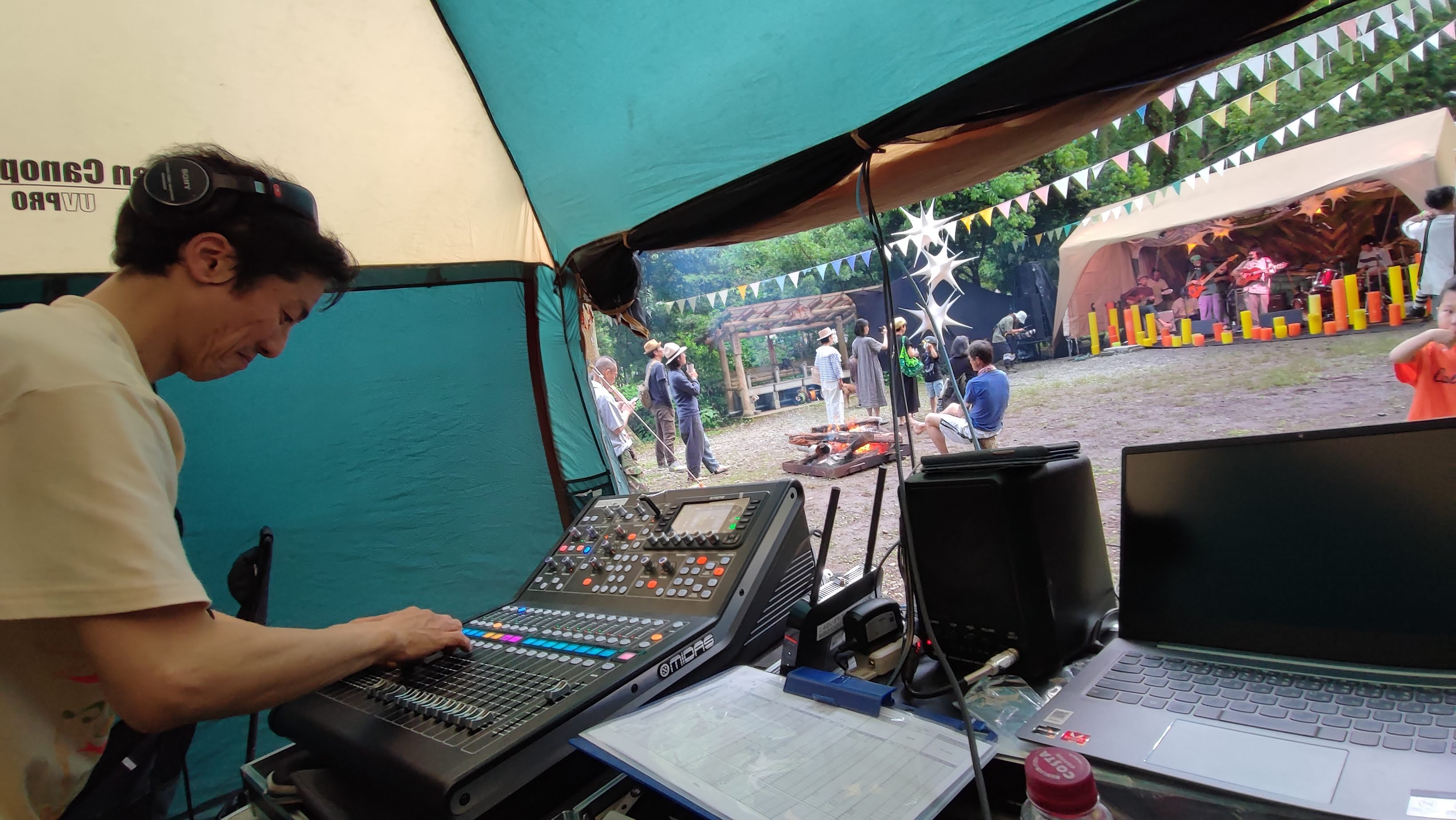 極楽温泉音楽祭はライブアーティストがメインのイベントなので、ステージ周りもFOHも大忙し!