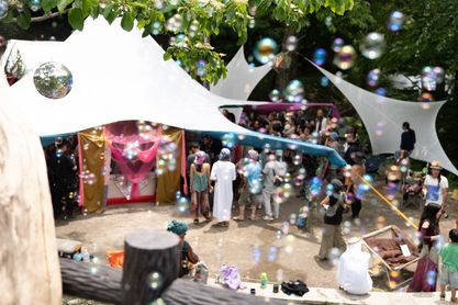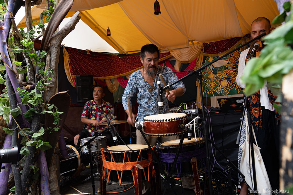 DJだけでなくバンドも登場。ドラムに和太鼓、ディジュリドゥに歌と様々な演者が目白押しにやってきます。