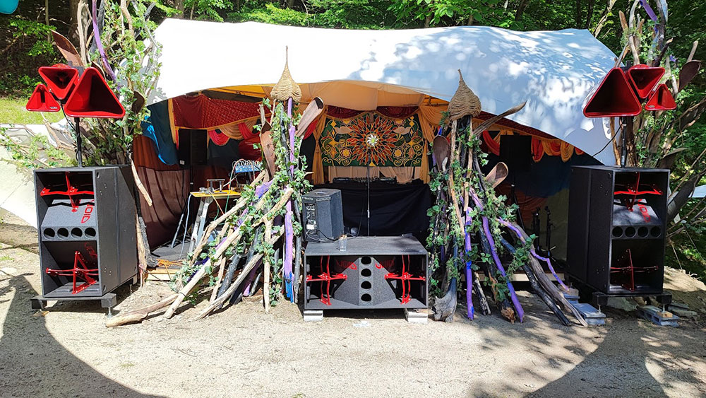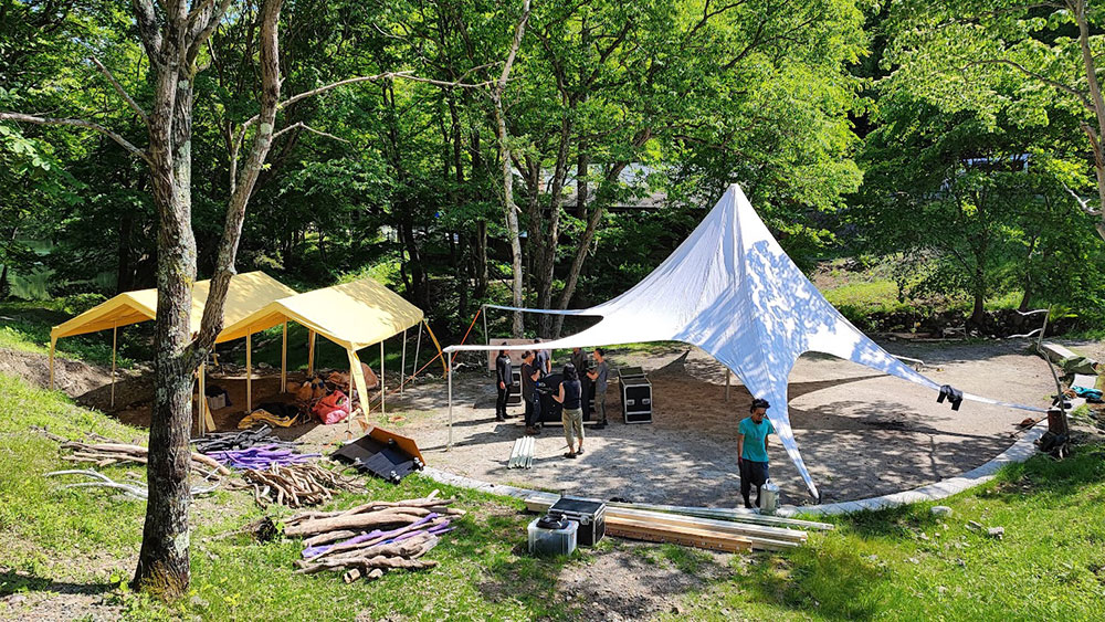 会場は山梨県北杜市のヴィレッジ白州。真ん中に池がある北欧を思わせる素敵な会場です。ここは近隣に民家がなく、騒音問題がほとんどないので(管理人さんいわく、多少はあるらしいです)24時間、音が存分に出せるのが魅力の会場ですね。