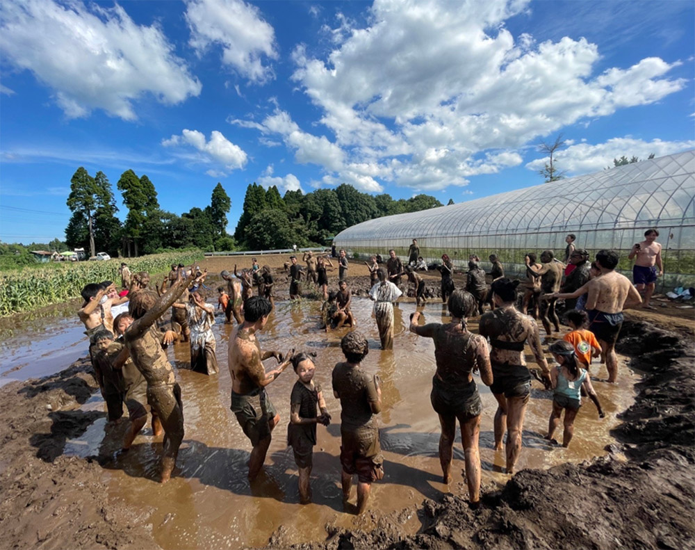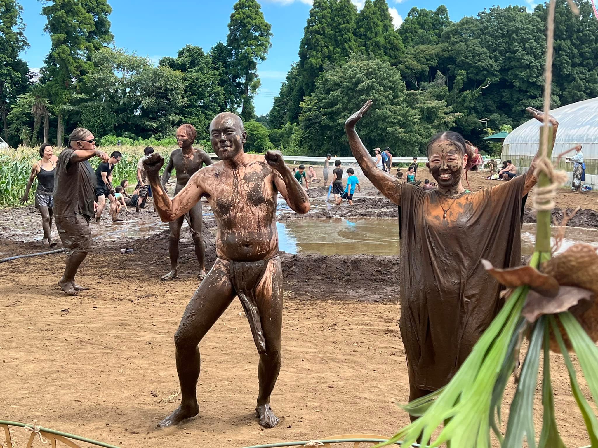 Mud Land Festとは、”食べれる土?”で有機農業を営むサイトウカンイチさんの畑に泥のプールを作って、音楽フェスをしちゃおうという大変思い切った企画です。