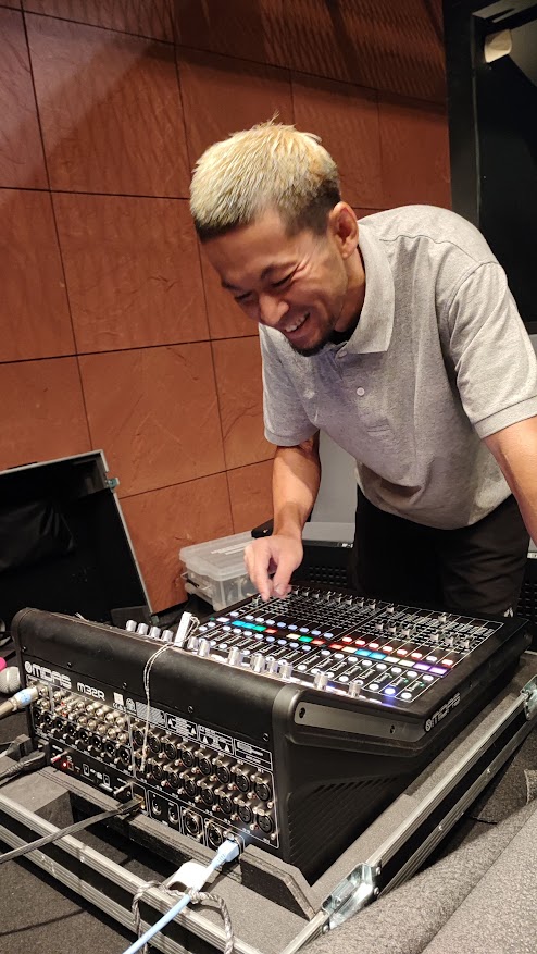 音響機材は、ほとんどホールの方で準備して頂けたので、私たちは使い慣れているPAミキサーと、マイクセットだけを持っての参加です。
