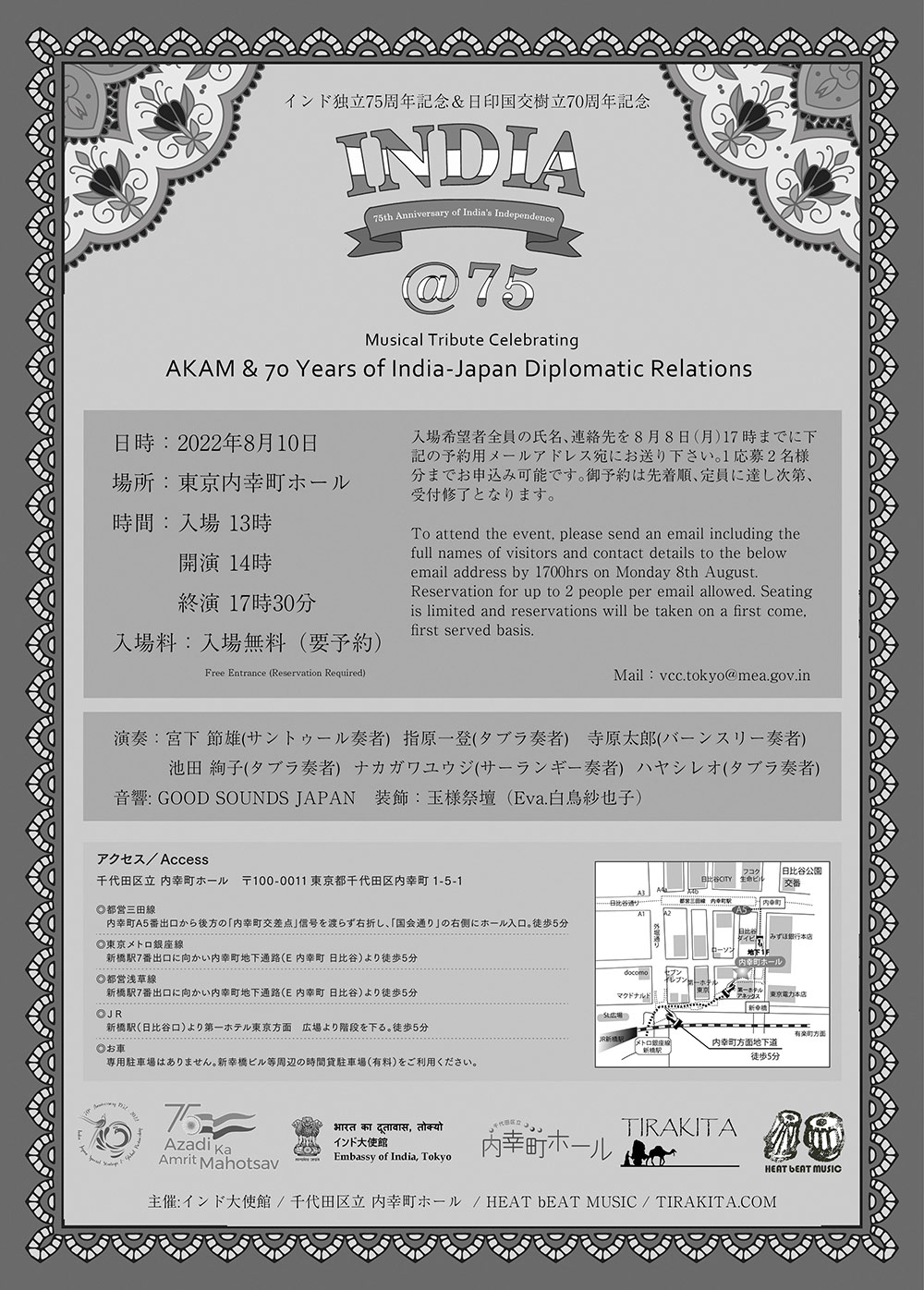 2022年8月10日は、野外フェスのPAを主体とするGOOD SOUNDSとしては珍しいホールでのお仕事でした。インド大使館、千代田区内幸町ホール、ティラキタ、HEAT bEAT MUSICによる、官民共催という形でのインド古典音楽コンサートをお手伝いさせて頂きました。