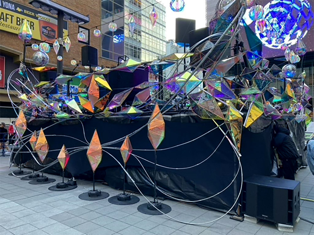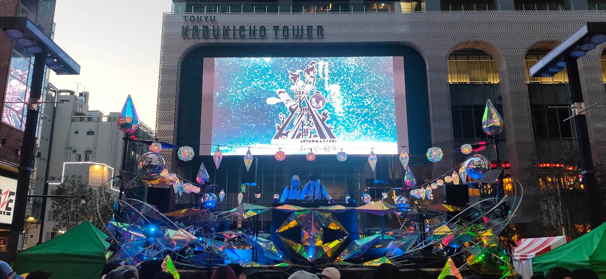 装飾はミラーボーラー、櫓を立ててのDJ並びに生演奏を照明クルーも加わって旧コマ劇場前、現新宿シネシティ広場での攻めた野外イベントin歌舞伎町。