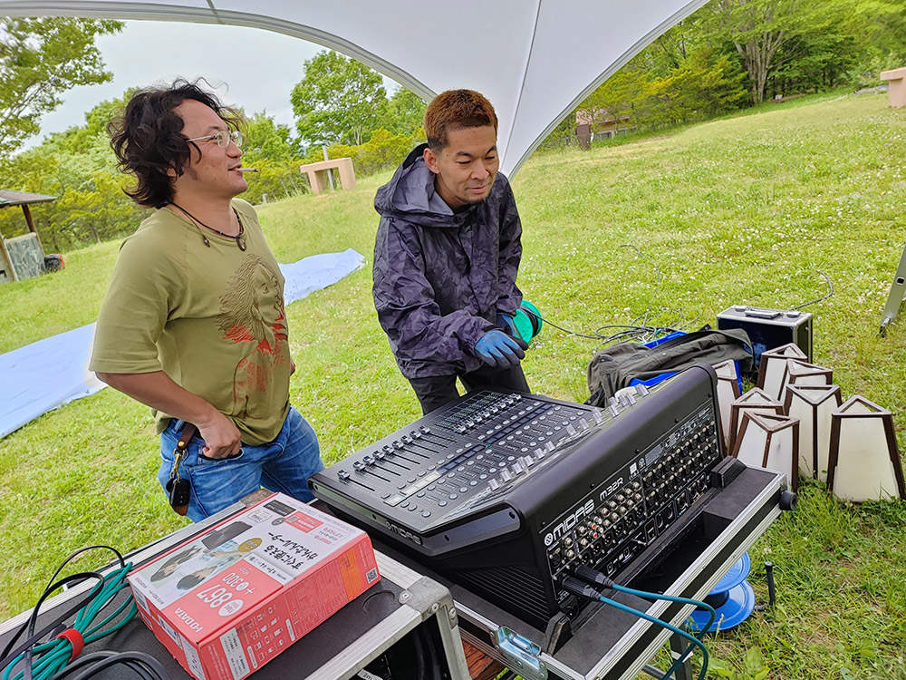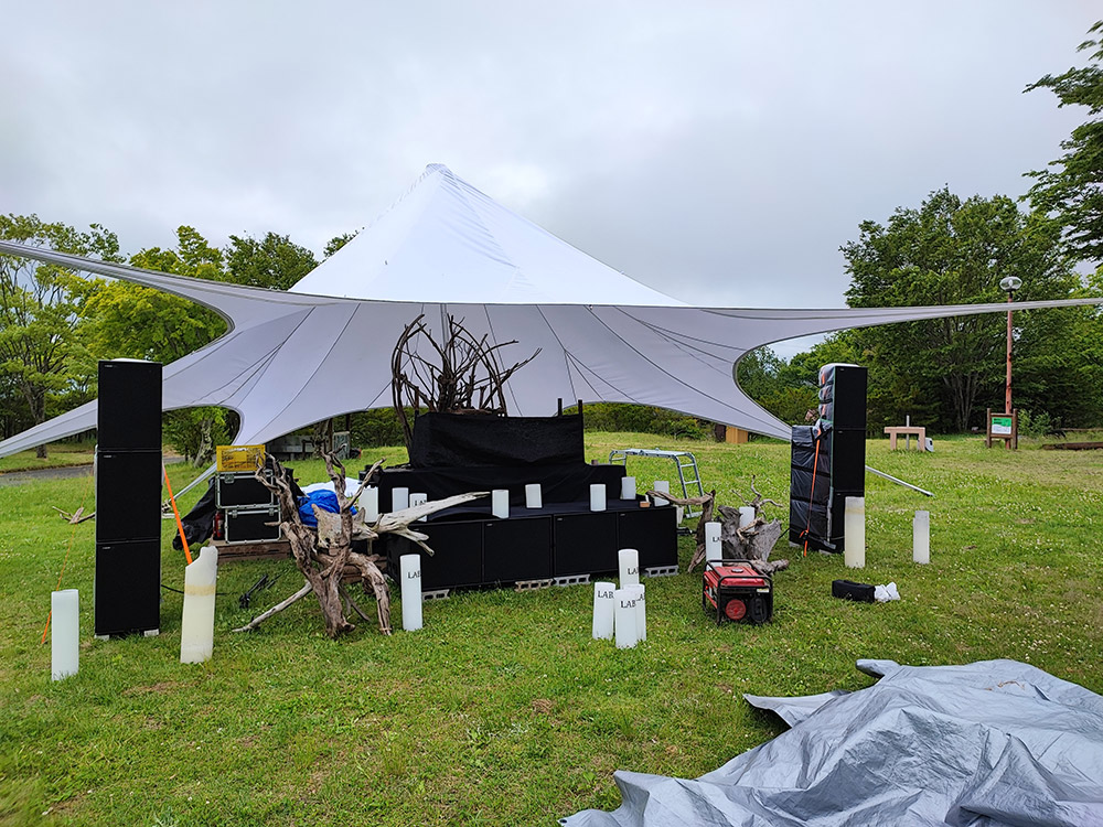 2023年5月20日、21日に福島県鬼ヶ城で行われたLAB. x GENSHIにて音響として携わらせていただきました。昨年の山梨県小菅村で行われた前回のMATRICARIAから場所を移し、今年は遠くまで山の稜線が見える福島県の素敵な会場での開催です。